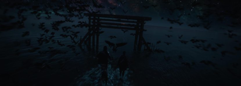 Overhead, the skies were replaced with a CG aurora nebula, built from astrophotography references at Kielder Forest Observatory. The sky was designed to reflect 28 years without light pollution, resulting in brilliant clarity of the Milky Way and a murmuration of over 10,000 CG birds.
