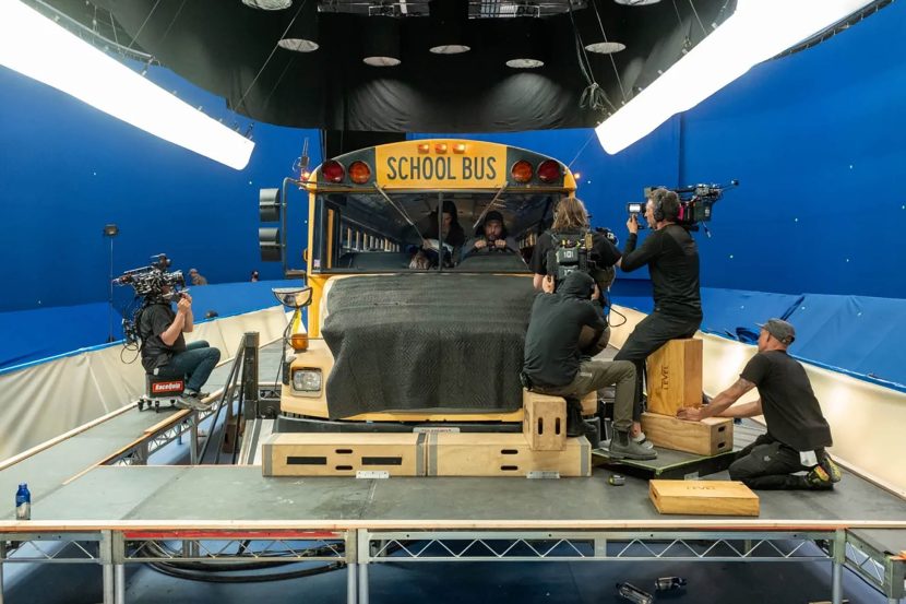 • Camera and Rigging: The film was shot using Alexa 35s, often switching to Super 16 lenses for fire scenes to reduce weight and increase safety for camera operators on the bus. Additionally, the bus was mounted on hydraulic actuators programmed to mimic the jostling of real roads.
